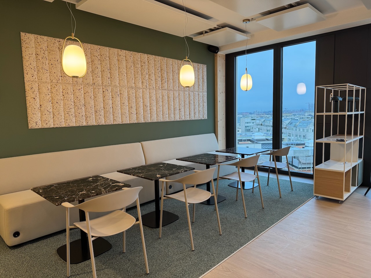 Large open spaces provide room for meetings, events, and relaxation with a view over Vienna.