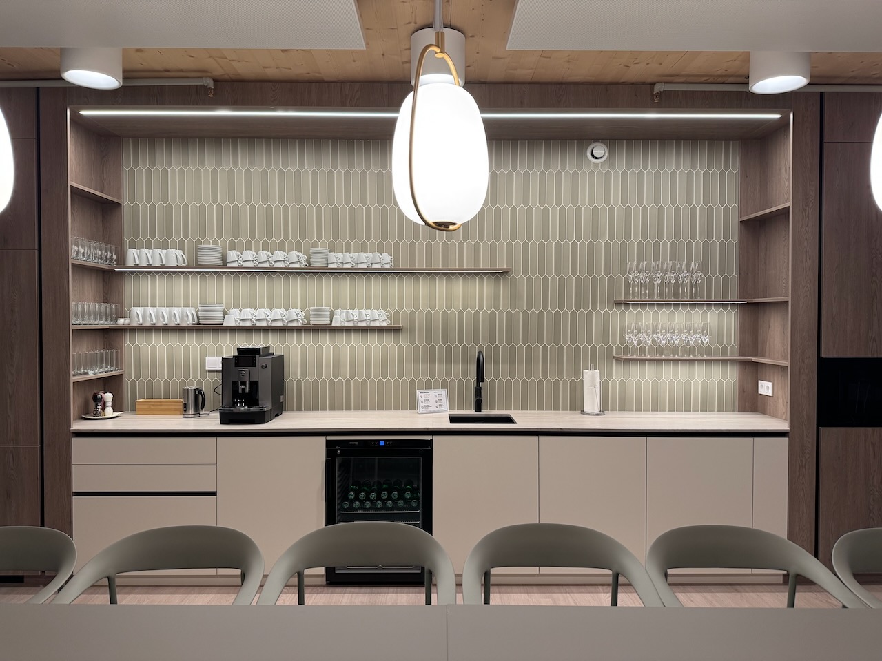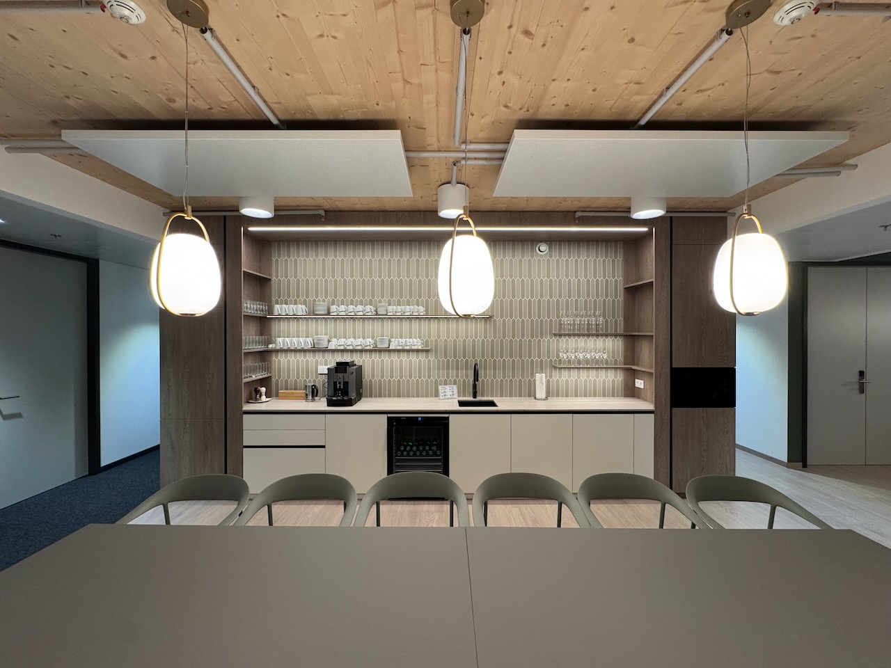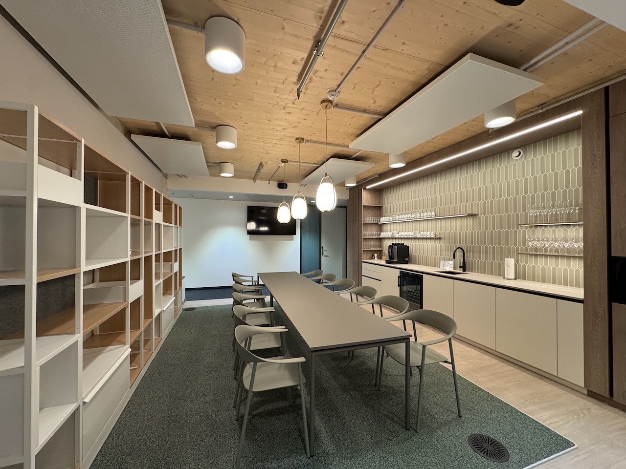 Elegantes Superior Office mit zwei bis drei Arbeitsplätzen, ausgestattet mit hochwertigem, elektrisch höhenverstellbarem Büromobiliar, direkt neben der exklusiven Business Lounge gelegen; Sichtholzelemente und große Fensterfronten sorgen für ein besonders wohnliches Raumgefühl; Fantastischer Fernblick und Zugang zu Terrassen und Außenflächen direkt auf der Etage!